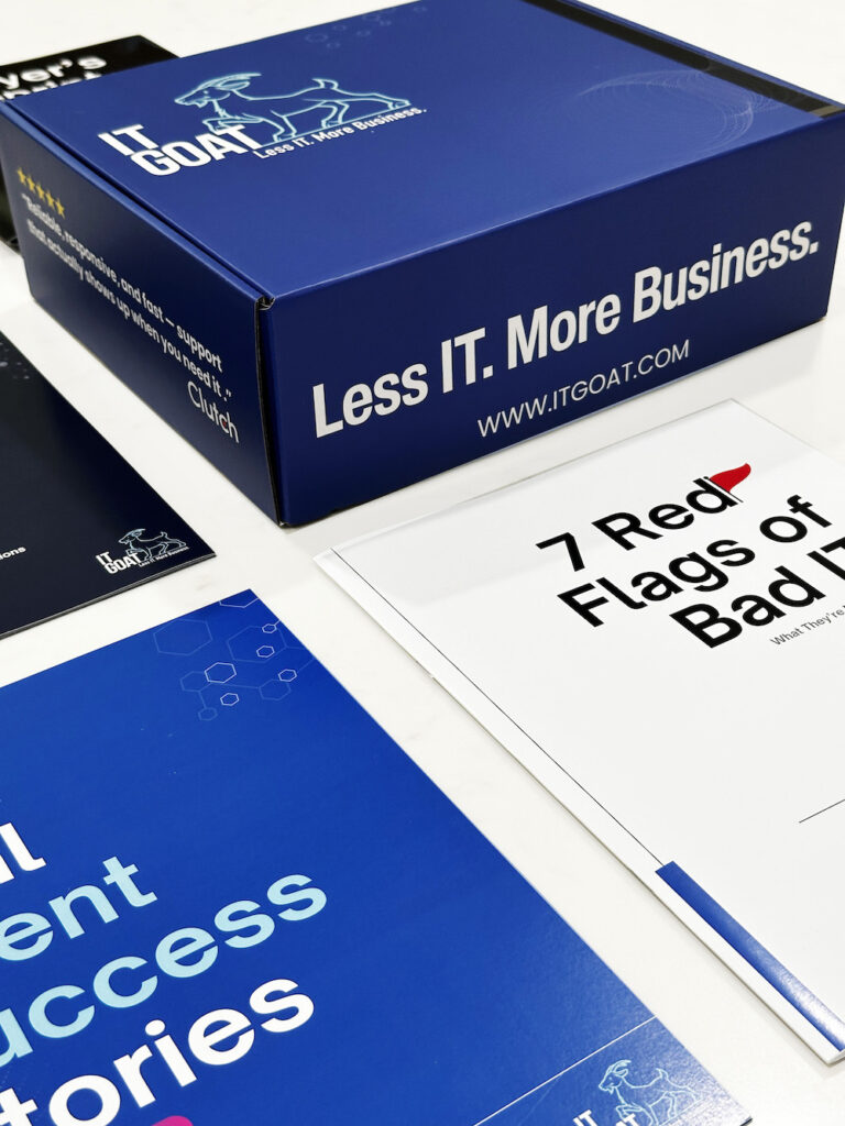 The kit was designed to be a real starter package for prospects and clients. Something that actually delivers value, not just a logo on a random item. It included clean messaging, useful IT/security resources, and physical collateral that felt intentional. The point wasn’t “wow.” The point was “these people have their act together.”